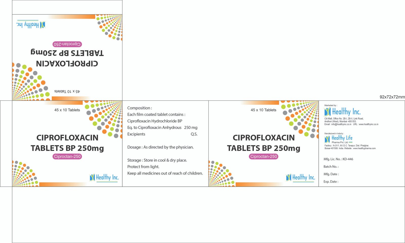 We offer Contract Manufacturing (Third Party) services for this high-volume antibiotic. Ciprofloxacin has an intensely bitter taste. Our WHO-GMP certified facility in Mumbai utilizes advanced Film Coating Technology to mask the taste completely, ensuring patient compliance. We also employ high-speed compression lines to meet the massive global demand for this essential medicine. Healthy Inc manages the export logistics, supplying government tenders, hospitals, and pharmacy chains across Africa, Latin America, and Southeast Asia.