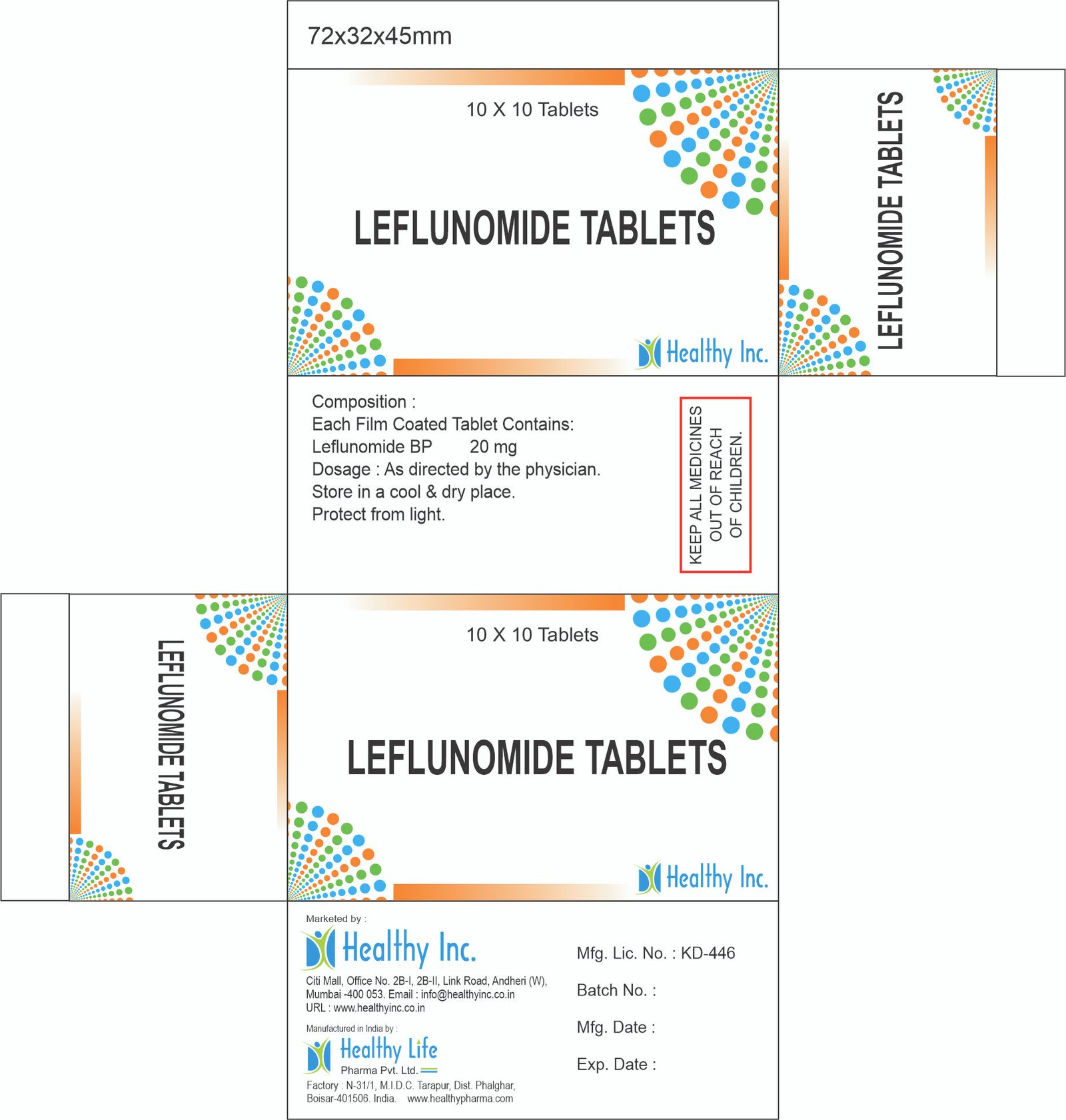 Film Coating: We use a specialized moisture-protective film coating. This is critical because Leflunomide can degrade into its active metabolite (Teriflunomide) prematurely if exposed to humidity during storage.